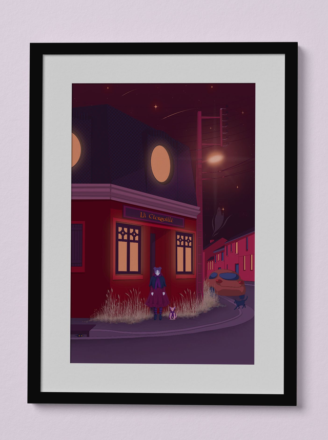 Affiche artistique A4 | Illustration originale bar des monstres et vampires | Décoration murale Halloween | House 023